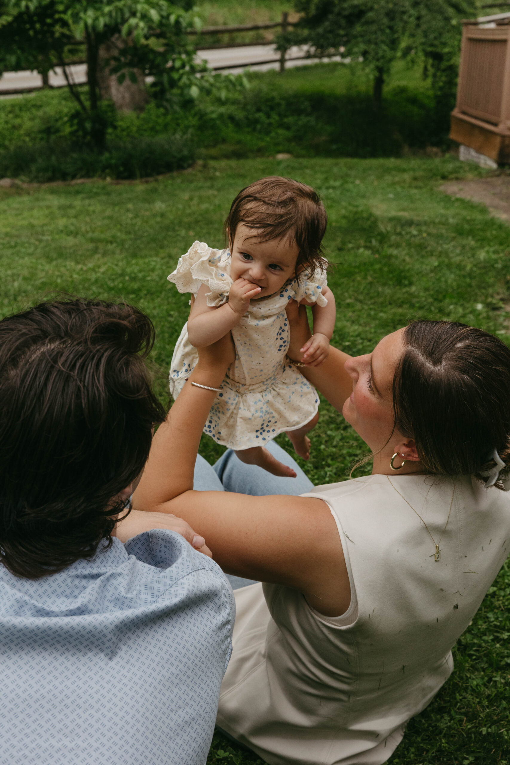 For this session, we explored the surrounding grass paths around the cabin, and even laid in the grass by the front porch. These small in-between moments of laughter, or the baby entranced by holding a flower, are the ones that tell your family’s story in a meaningful way.