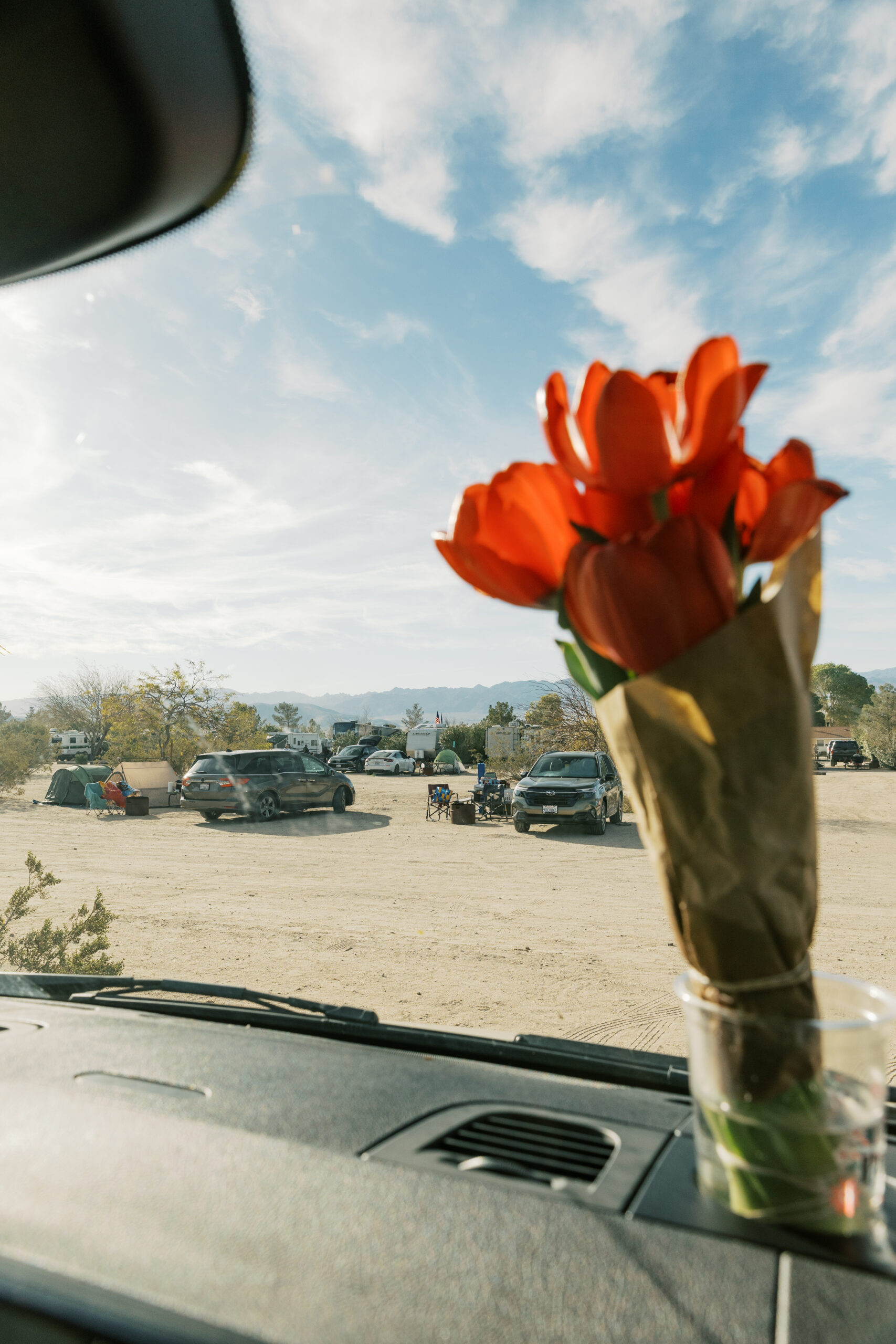 For Valentine’s Day weekend, I headed east to Joshua Tree Friday evening after hitting the farmers market. I bought myself tulips for the road, and powered through a hell-ish traffic that took me 4.5 hours to get where would normally take only 2.5.